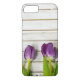 Funda De Case-Mate Para iPhone tulipanes púrpuras en madera