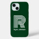 Este moderno funda de iphone 15 verde monograma es moderno y clásico. Presenta tu primera o última inicial en un tipo de letra atrevido y moderno y tu nombre en un tipo de letra clásico de coordinación en blanco. Es simple y mínimo.