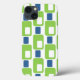 Este estuche para iPhone tiene un diseño moderno de mediados de siglo de rectángulos retro lima verde y azul.