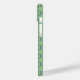 Este estuche de teléfono tiene un diseño art deco de círculos azules y púrpura que se conectan con líneas en un campo de verde claro.