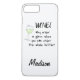 ¡Muestre su amor del vino con este caso más del iPhone 6! Un vidrio de vino blanco se inclina hacia el diseño del texto de la palabra que dice el " ¿El vino, por qué pide un vidrio cuando usted puede pedir la botella entera? " De moda, divertido y caprichoso, este caso de la célula será grande como regalo para un amante del vino. El texto es negro. Fácil modificar para requisitos particulares o personalizar para añadir su nombre u otras palabras debajo del texto del arte diseñe. ¡Grande para un camarero también! El arte y el diseño originales está por el artista Phyllis Dobbs. Los colores son verde lima y negro.