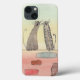 Este divertido estuche para iPhone de Cat presenta mi pintura acuarela de 2 gatos callejeros en una pared de ladrillo.