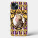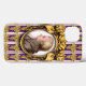 La obra original de ZoeSPEAK en este Funda de iPhone 13 muestra un retrato del compositor de música clásica Wolfgang Amadeus Mozart. El retrato es un perfil enmarcado en un marco dorado oval ornamentado. El marco cuelga sobre un fondo de papel pintado de color púrpura con racimos dorados de uvas en filas y rayas verticales blancas y lavanda.