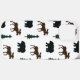 Un patrón con un alce marrón y oso negro y un árbol.