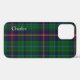 Elegante funda de iPhone 12 hecho en una colorida yegua escocesa tradicional escocesa de color azul, verde, amarillo y rojo del clan Joven. El texto blanco que se ejecuta vertical, en el lado izquierdo, está listo para personalizar. Elegante y excelente manera de proteger tu dispositivo electrónico, y hace una gran idea de regalo.