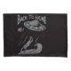 alienígena ufo surfeando ilustracion con letras de regreso a casa en blanco y negro