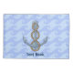 Ancla con ilustracion de cuerda sobre las olas fondo transparente azul claro sin costura. Texto personalizado.
