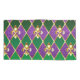 joyas, fondo del Mardi Gras de rhombus violeta y verde, lirios dorados decorados.