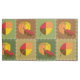 Cuatro cuadrados están decorados con hojas y calabazas en tonos caídos de rojo, naranja, amarillo y marrón. El punzonado blanco aporta un toque decorativo, dando a este patrón la apariencia de un edredón, creando un ambiente muy acogedor para el otoño.