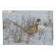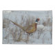Funda de cojín del faisán de collar en la nieve. Una bonita fotografía de un gran faisán de collar macho tomada en el sureste de Alberta, Canadá.Estos hermosos pájaros multicolores de tierras altas son importados y todavía tienen dificultades en el invierno, especialmente si la nieve profunda les dificulta encontrar las semillas y bayas de las que se alimentan.