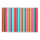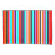 Esta funda de almohada tiene un diseño sencillo de rayas verticales de espesor variable en rojo, naranja, morado, negro, azul claro y blanco.