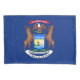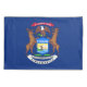 Este diseño presenta la bandera de Michigan, un estado en las regiones de los Grandes Lagos y el Medio Oeste de los Estados Unidos. Su nombre proviene de la palabra nativa norteamericana "mishigami", que significa "agua grande" o "lago grande". La bandera del estado de Michigan representa el escudo de armas del estado en un fondo azul oscuro. El diseño presenta tres lemas latinas. "E Pluribus Unum" significa "De muchos, uno", lema de los Estados Unidos; "Tuebor" significa "yo defenderé"; y "Si Quris Peninsulam Amoenam Circumspice" significa "Si buscas una península agradable, mira sobre ti", que es el lema oficial del estado. Un residente de Michigan es conocido como Michigander o Michigania. La capital del estado de Michigan está desembarcando. Otras ciudades y pueblos importantes de Michigan son Detroit, Grand Rapids, Warren, Sterling Heights, Ann Arbor, Dearborn, Clinton Charter Township, Canton Charter Township y Livonia. Los diez condados más grandes del estado de Michigan son el Condado de Wayne, el Condado de Oakland, el Condado de Macomb, el Condado de Kent, el Condado de Genesee, el Condado de Washtenaw, el Condado de Ottawa, el Condado de Ingham, el Condado de Kalamazoo y el Condado de Livingston.