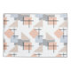 Esta funda de almohada tiene un diseño Bauhaus de rectángulos repetidos, cuadrados, diamantes y triángulos en colores de playa de bronceado, gris, azul y naranja.