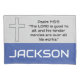 Cita de la Biblia personalizada con Funda de almohada azul/gris de la cruz cristiana. Personalizar: agregue el nombre de su hijo y el versículo de escritura favorito. Imagen de nube de león y cordero. Hace un gran regalo para la ducha de bebé o un regalo de primer cumpleaños.