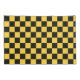 A black and yellow checkerboard pattern with alternating squares creates a bold, geometric design. The pattern appears balanced and vibrant.