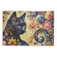 Funda De Cojín Black Whimsical Cat Resumen Arte de pintura floral