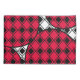 Esta funda de almohada tiene un diseño moderno de mediados de siglo de diamantes negros sólidos dentro de los contornos de diamante negro con manchas rosas debajo de ellos, todo en un campo de blanco.