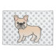 El original ilustracion personalizado de Destei de un lindo abrigo crema color Bulldog perro de raza francesa. El fondo tiene un patrón de huellas de perros grises.