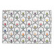 Esta funda de almohada tiene un diseño moderno de mediados de siglo, hecho de hexágonos encadenados junto con un círculo sobre una clavija dentro de cada uno.