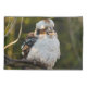 El Laughing Kookaburra es instantáneamente reconocible tanto en plumage como en voz. Por lo general, es de color blanco roto, con la barrera ligeramente marrón oscuro y marrón en la parte posterior y en las alas. La cola es más ruidosa, ampliamente cortada con negro. En la cara hay una llamativa franja de ojos marrón oscuro. Es uno de los miembros más grandes de la familia kingfisher.
