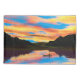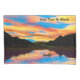 Una canoa cruza un lago montañoso que refleja los hermosos naranjas y azules de una colorida puesta de sol. Añade tu propio texto.