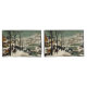Este diseño presenta un cuadro de aceite sobre madera del artista Pieter Bruegel the Elder (1525/1530-1569), del siglo XVI, que fue uno de los artistas más importantes de la pintura renacentista holandesa y flamenca. Muestra una escena de la temporada invernal en la que se puede ver a tres cazadores regresando de una expedición acompañada por sus perros. Los cazadores no han tenido mucho éxito y sus perros parecen cansados y cansados. Es una escena de gran patetismo. Sin embargo, uno de los hombres lleva el cuerpo delgado de un zorro muerto. En una posada cercana, algunos adultos y un niño preparan comida en una chimenea. Aves como cuervos y magpies están sentados en los árboles desnudos; algunos críticos los han visto simbólicamente como malos presagios. El paisaje es un valle de fondo plano cubierto de nieve blanca, y hay un río serpenteando a través de él; la gente también está jugando hockey o patinaje sobre hielo en lagos congelados. En segundo plano, hay cimas montañosas salvajes, a pesar de que no existen en los Países Bajos de Bélgica, los Países Bajos y Luxemburgo. A veces, la pintura también se titula "El regreso de los cazadores"; su título holandés original es "Jagers in de sneeuw" [Hunters in the Snow]. La obra original se terminó en 1565 y ahora se encuentra en el Museo de Bellas Artes de Kunsthistorisches, Viena (Austria).