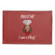 Cabeza del chef con gorra, pañuelo rojo y texto personalizado.