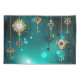 El oro, las llaves antiguas con engranajes y diales cuelgan de las cadenas de oro sobre un fondo verde luminoso.
