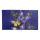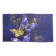 Composición de lujosas mariposas de zafiro y joyas de oro sobre fondo de textura azul.