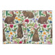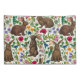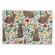 Conejos dibujados a mano y flora de bosques, hongos y berias y bichos de helechos