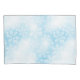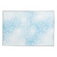 Copos de nieve blancos y luces en un suave fondo azul, patrón de Navidades