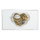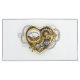 Corazón mecánico, volumétrico, de vapor punk con manómetro de presión, acero y engranajes dorados sobre fondo blanco. Estilo Steampunk.