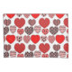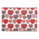 Esta almohada tiene un diseño de San Valentín de corazones repetidos con diferentes gráficos dentro de un campo de blanco.