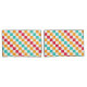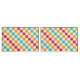 Alternating red, orange, teal, and white squares create a colorful, vibrant checkerboard pattern, conveying an energetic and playful tone.