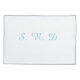 Reverse features monogram in an elegant blue font. (also available in pink) All text is customizable.