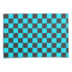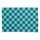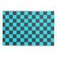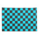A checkerboard pattern with alternating black and cyan squares. The repeating geometric design creates a balanced, rhythmic visual effect.