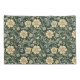 Dark green wallpaper pattern featuring repeating stylized yellow flowers interspersed with sage green leaves and swirling vines.