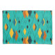 Esta funda de almohada tiene un diseño atómico moderno de mediados de siglo de diamantes, y estallidos en un campo de turquesa.