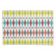Esta funda de almohada presenta un diseño moderno de mediados de siglo de diamantes estirados y estallidos en un campo blanco.