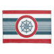 Diseño náutico con decoración de brújula en forma redonda sobre fondo rayado azul, rojo y blanco