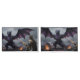 A large, dark purple dragon with massive wings faces a warrior in golden armor, who is holding a sword. The dragon is detailed with spikes and a menacing expression. The warrior is seen from the back, ready to fight. The ground is rocky and fiery, suggesting a volcanic or hellish landscape. The sky is overcast, adding to the dramatic atmosphere of the scene.