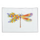 Flora de dragón floral pintada de forma artística en naranja y púrpura contrastante con amapola californiana amarilla, brillante, floreciente y flores silvestres azules sobre fondo blanco.