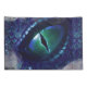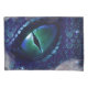 Mítico ojo de dragón gótico medieval azul con tinta de glam morado y niebla.