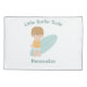 Pequeño surfista con una funda de almohada personalizada. "Pequeño Surfer Dude" Personaliza con el nombre, las iniciales, el mensaje o cualquier cita que quieras. También hay una manta para bebés disponible en este tema y diseño.
