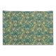 Ornate floral pattern with symmetrical yellow, red, and beige flowers and leaves on a green background. Design evokes a vintage, elegant feel.