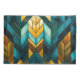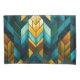 Bold symmetrical patterns in rich gold tones and deep teal hues.
