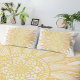 Este bonito conjunto de fundas de almohadas presenta un diseño de arte de moda dorada y mandarala con un fondo blanco.