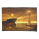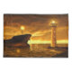 Escena náutica con faro en una puesta de sol naranja. frontiernow.com
