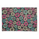 Un patrón floral abstracto dibujado a mano en una atractiva paleta de colores compuesta de discos circulares dispersos y variados con roces como rojos para dividir los pétalos y con centros manchados.