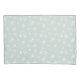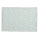 Sencillo patrón de superficie dulce sin costura con flores blancas dibujadas digitalmente sobre un sólido fondo verde azul pastel. Este es un patrón transparente. Puede cambiar el color de fondo y la escala y posición del patrón.